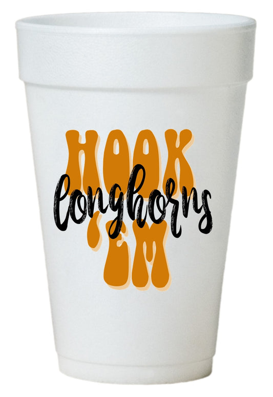 Texas Peace-Love-Hook 'Em Styrofoam Cups-Texas Tailgating Cups