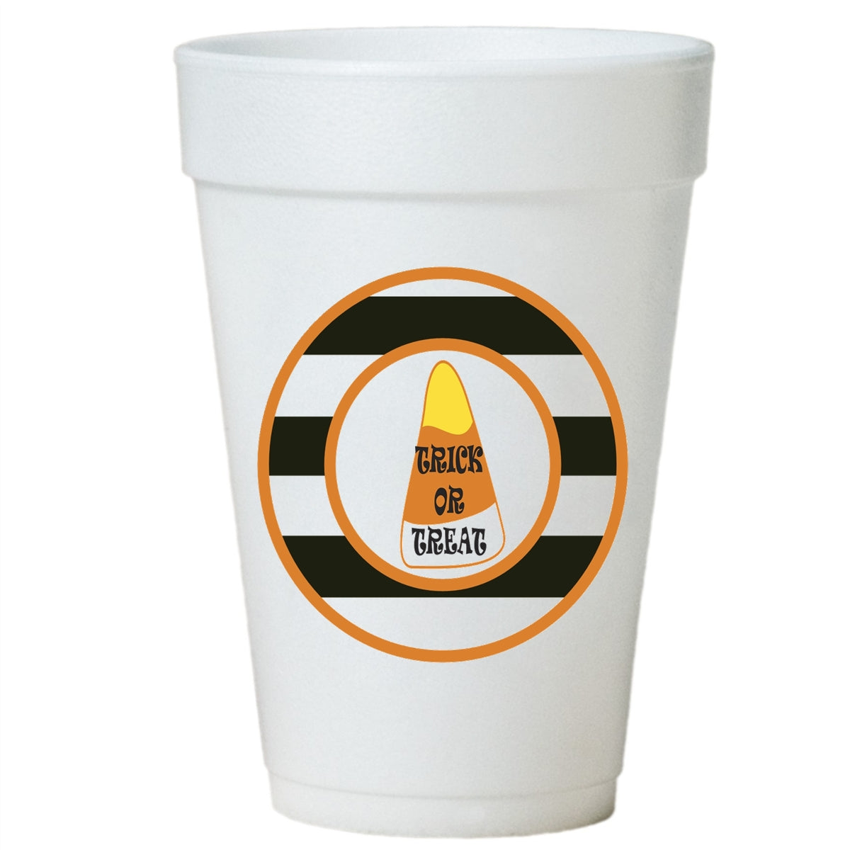 Candy Corn Striped Halloween Party Cups- Styrofoam Halloween Cups