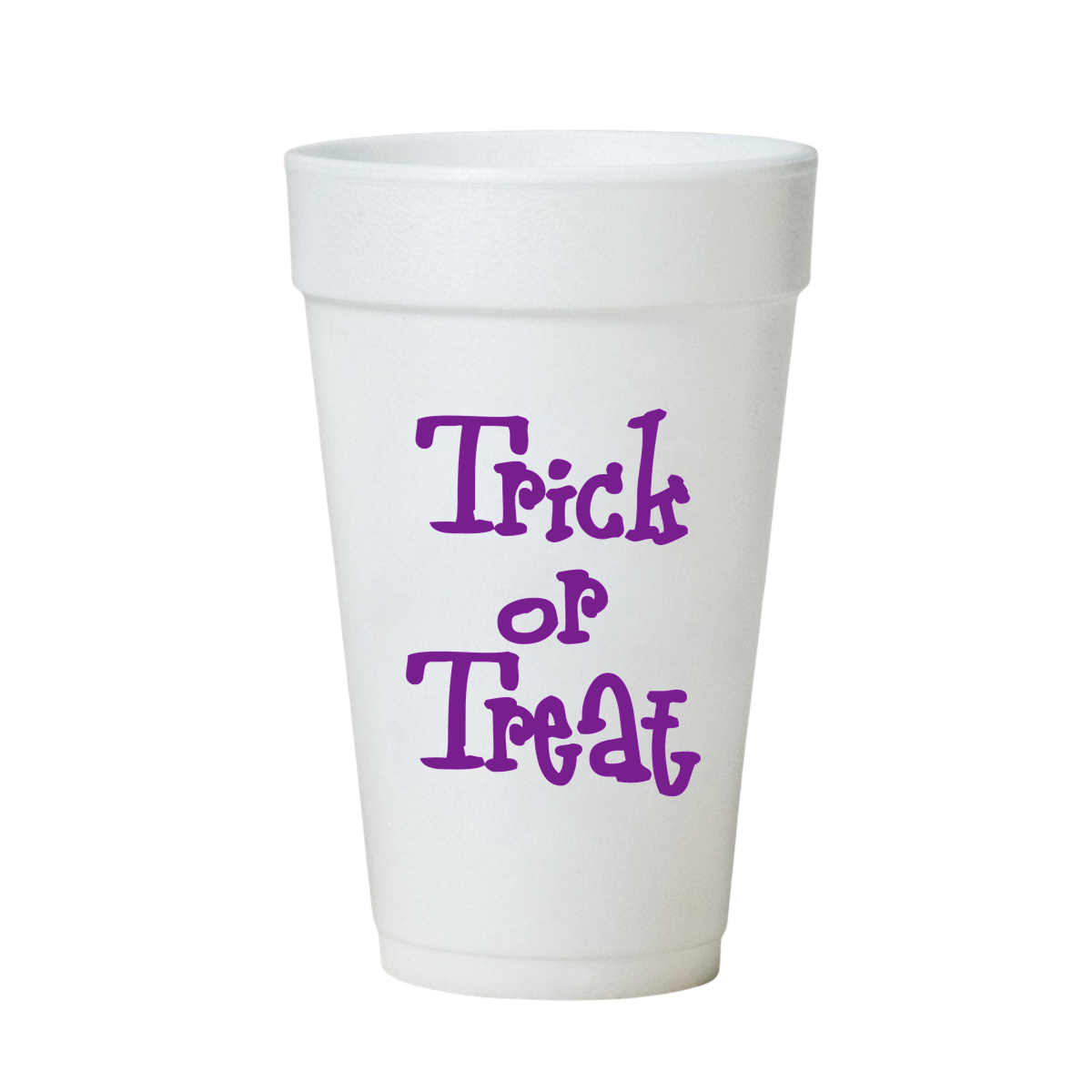 Purple Trick or Treat Halloween Party Cups - Styrofoam Halloween Cups