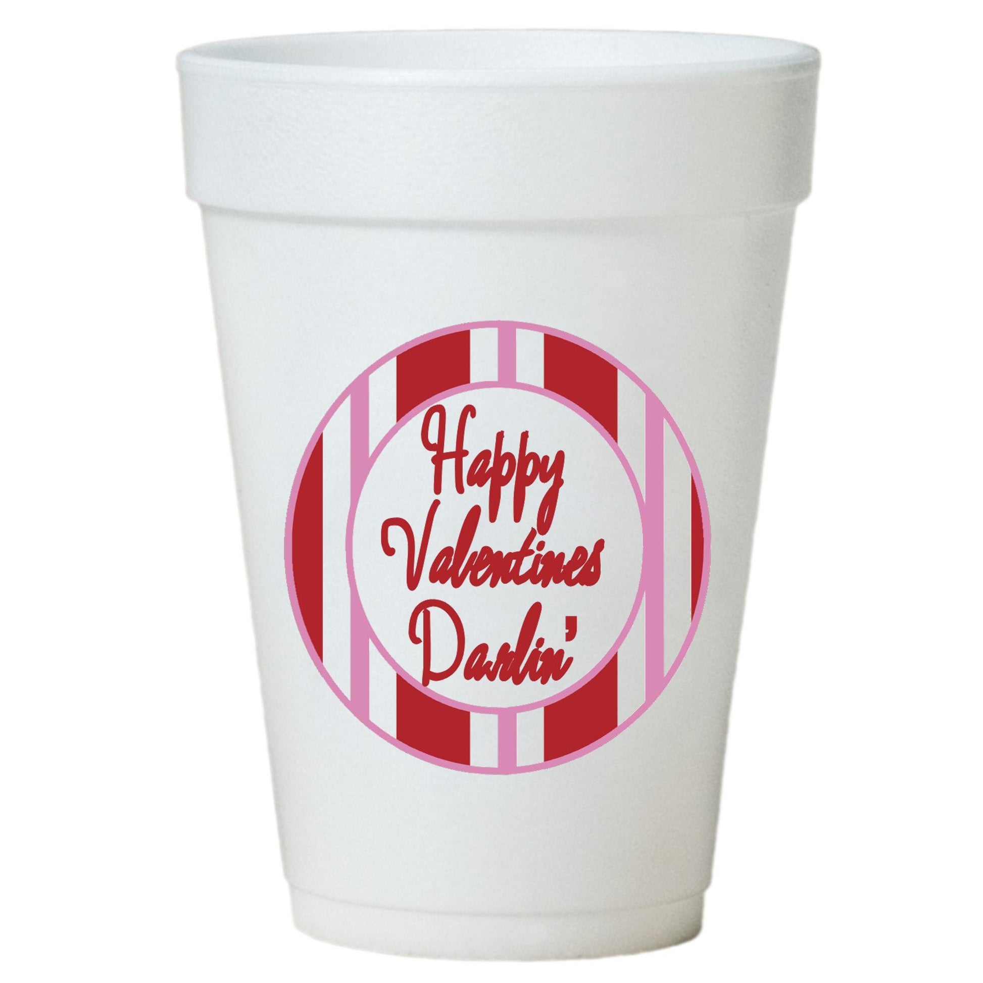 Valentine's Day Party Cups-Happy Valentine's Darlin Styrofoam Cups - 16oz-Pack of 10