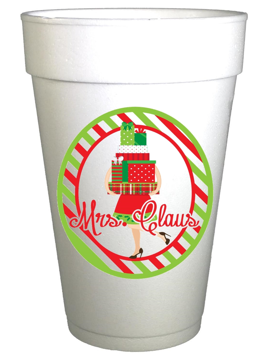 Mrs. Claus Styrofoam Christmas Cups-10ea/16oz Styrofoam Christmas Party Cups