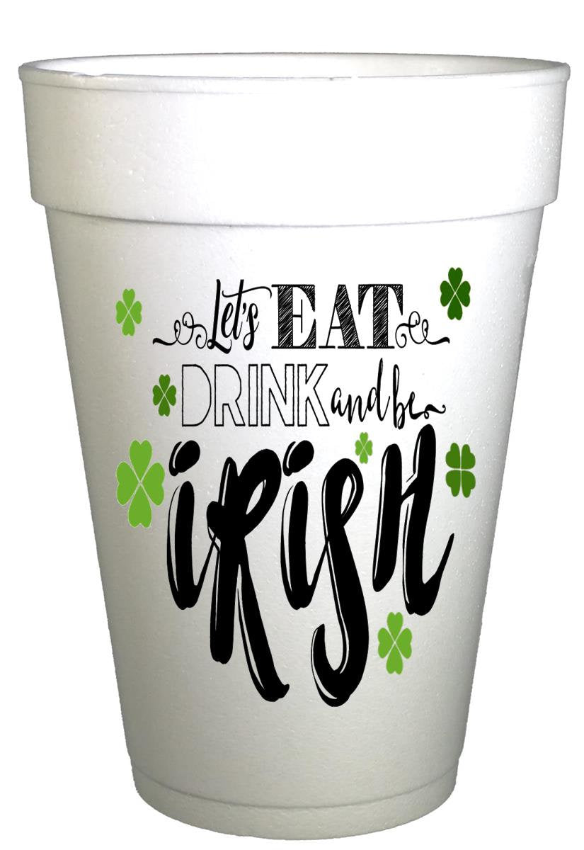 St Patricks Day Eat Drink and Be Irish St. Patricks Day Party Cups- 10ea/ 16 oz Styrofoam St. Patricks Day Cups- Instock