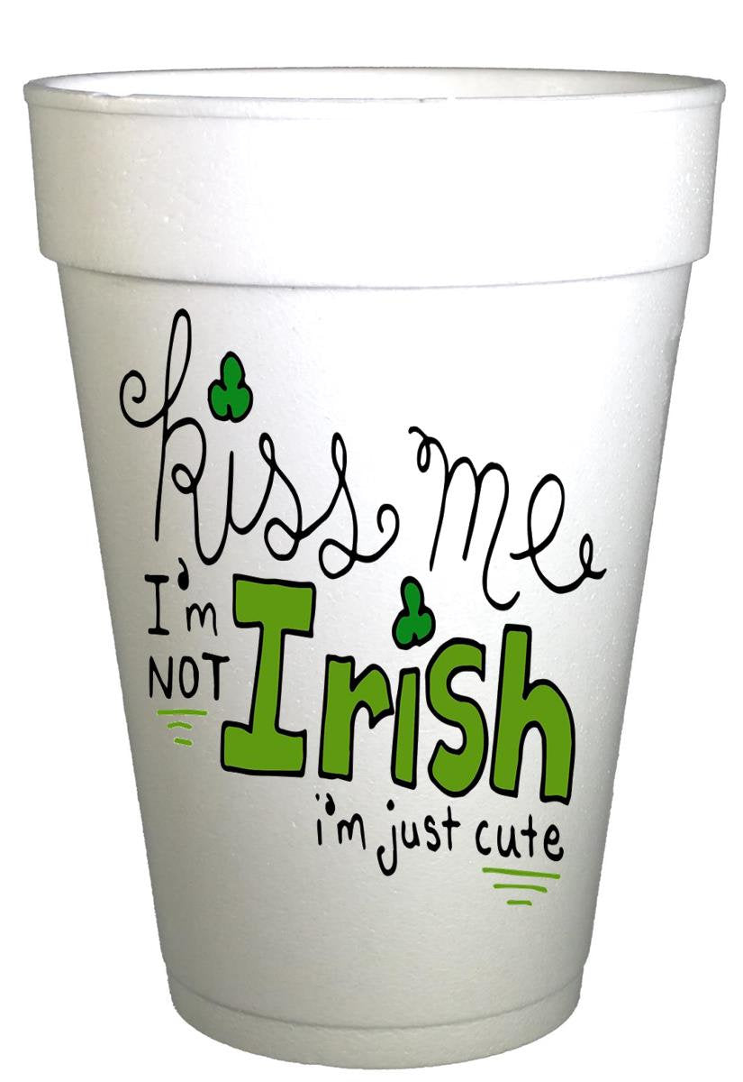 St Patricks Day Kiss Me I'm Irish St. Patricks Day Party Cups- 10ea/ 16 oz Styrofoam St. Patricks Day Cups- Instock