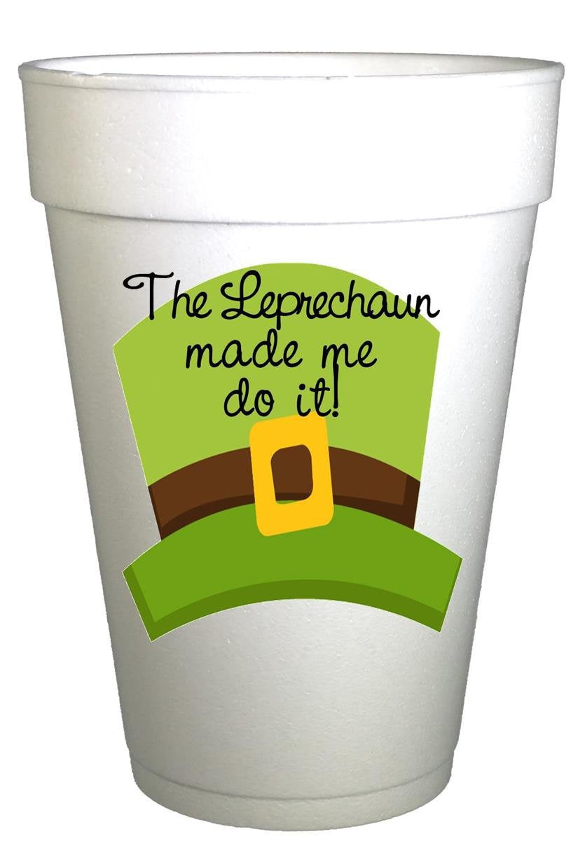 St Patricks Day Leprechaun made me do it St. Patricks Day Party Cups- 10ea/ 16 oz Styrofoam St. Patricks Day Cups- Instock